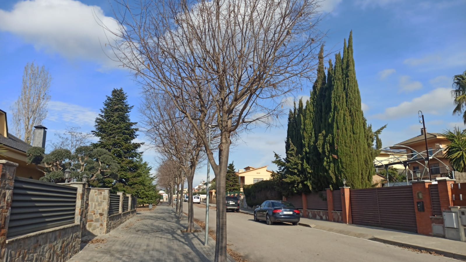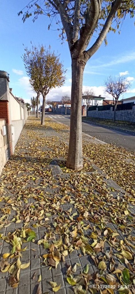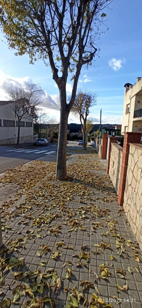 La setmana passada es va fer la poda de l'arbrat de la urbanització de Can Maiol. Hem recollit la inquietud del veïnat, perquè creiem que és una poda insuficient. Evidentment no som esperts en jardineria per saber els motius d'una poda tan pobra, però com podeu veure a les fotos, fetes després de la poda, només s'han tallat les branques baixes quedant tota la copa plena de branques i fulles, que en poc temps han caigut a terra i van tornar a omplir els carrers de fullaraca. Una de les reinvicacions és que les branques no entrin a les finques particulars i amb aquest poda tan pobre a la primavera les tenim a dins.